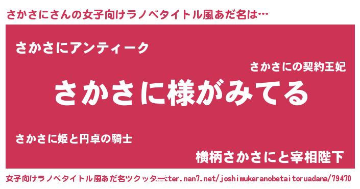 | 男性向けラノベタイトル風あだ名 | 『さかさにの嫁は女の子じゃないと思った?』 |