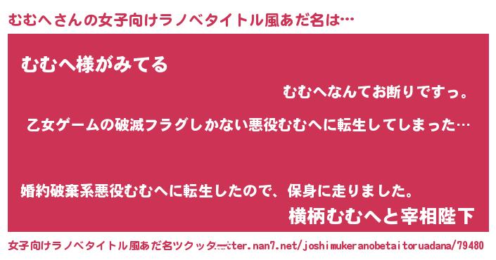 | 男性向けラノベタイトル風あだ名 | 『魔弾の王とむむへ』『ムムヘスレイヤー』 |
