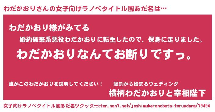 | ヒーロー風カッコイイあだ名 | 『超時空戦士ワダカオリ』『幻影騎士ワダ』 |