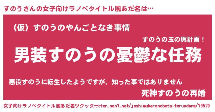 | 男性向けラノベタイトル風あだ名 | 『うちのすのうが世界を掌握している!』 |