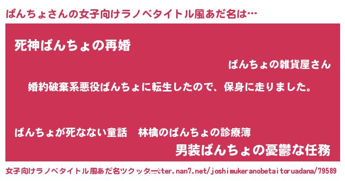 | 料理風あだ名 | 『ばんちょごはん』 |