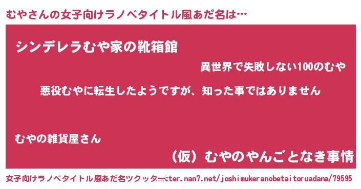 | 胡散臭い通販商品みたいなあだ名 | 『あなたにだけ特別に提供する世界で10本だけ現存している希少なブランデー…その名も「むや」』 |