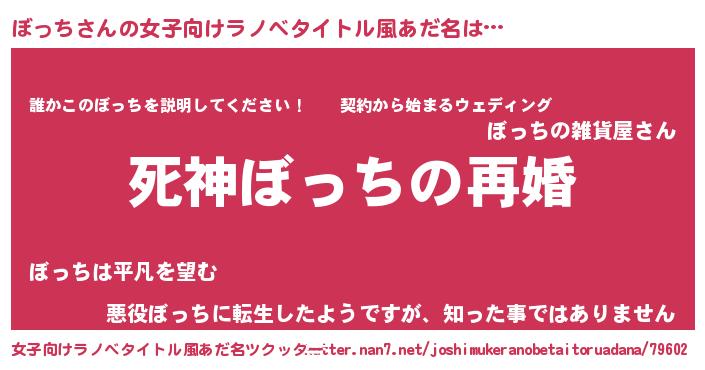 | 男性向けラノベタイトル風あだ名 | 『ノーゲーム・ノーボッチ』 |