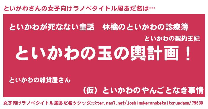 | ヘコむあだ名 | 『といもー』『といかわ(小並感)』 |