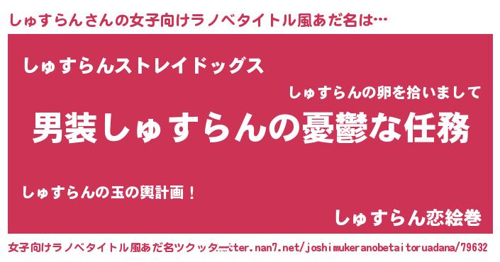 | 男性向けラノベタイトル風あだ名 | 『うちのしゅすらんが世界を掌握している!』 |