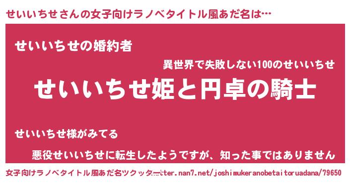 | 男性向けラノベタイトル風あだ名 | 『せいいちせの憂鬱』 |