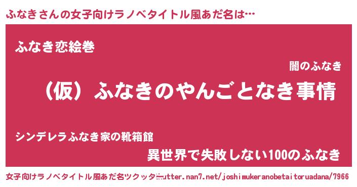 | 男性向けラノベタイトル風あだ名 | 『ふなきの憂鬱』 |