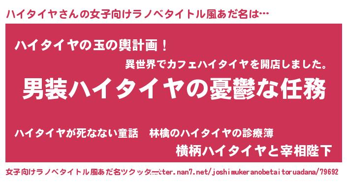 | 料理風あだ名 | 『ハイタイヤの炊き込みご飯』 |