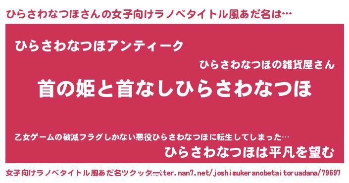 | 意味不明あだ名 | 『自称ひらさわなつほ』 |