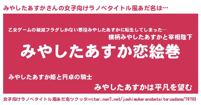 | 胡散臭い通販商品みたいなあだ名 | 『お金では代えられない隕石のかけら…その名も「みやしたあすか」』 |