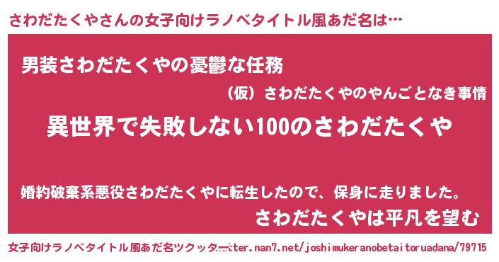 | 意味不明あだ名 | 『永久保存さわだたくや』 |