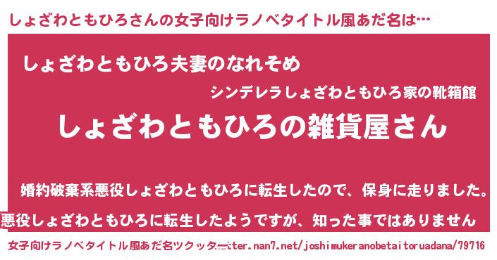 | 男性向けラノベタイトル風あだ名 | 『やはりしょざわともひろの青春ラブコメはまちがっている 』 |