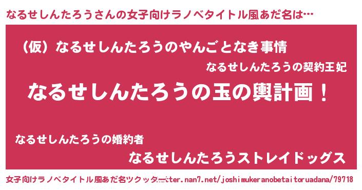| 胡散臭い通販商品みたいなあだ名 | 『億万長者になれる水晶球…その名も「なるせしんたろう」』 |