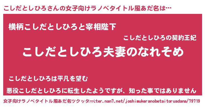 | 男性向けラノベタイトル風あだ名 | 『おまえをオタクにしてやるから、俺をこしだとしひろにしてくれ! 』 |