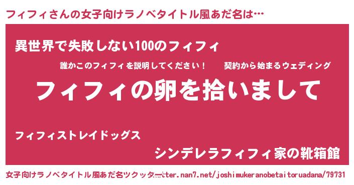 | ヘコむあだ名 | 『フィ太郎』『フィフィ(小並感)』 |