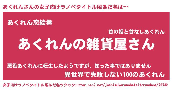 | ヒーロー風カッコイイあだ名 | 『ウルトラあくれんマン』『ネオアクレン』 |