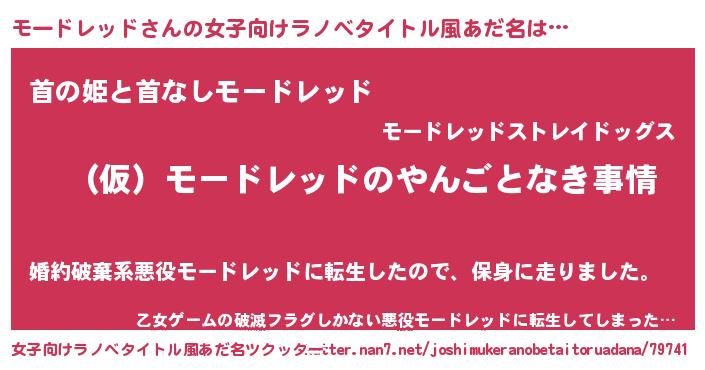 | 男性向けラノベタイトル風あだ名 | 『モードレッドの憂鬱』 |