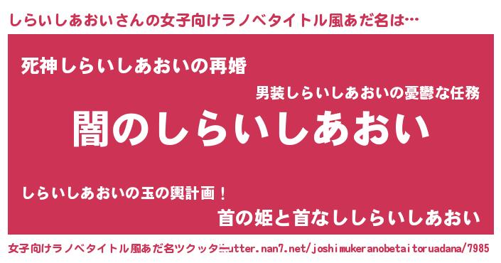 | 男性向けラノベタイトル風あだ名 | 『Re:しらいしあおいから始める異世界生活』 |