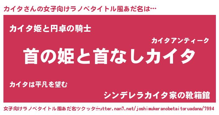 | 男性向けラノベタイトル風あだ名 | 『はたらくカイタさま!』『カイタの憂鬱』 |