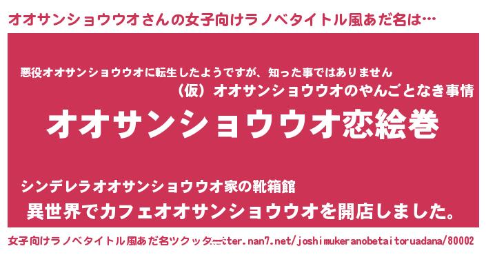 | 男性向けラノベタイトル風あだ名 | 『ノーゲーム・ノーオオサンショウウオ』 |