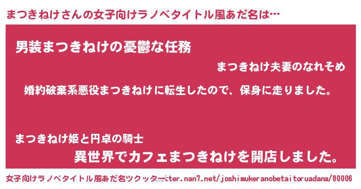 | 料理風あだ名 | 『まつきねけごはん』 |