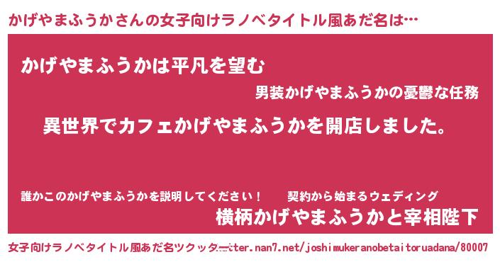| 胡散臭い通販商品みたいなあだ名 | 『前代未聞の健康食品…その名も「かげやまふうか」』 |