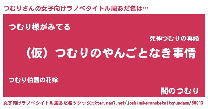 | 男性向けラノベタイトル風あだ名 | 『つむりの憂鬱』 |