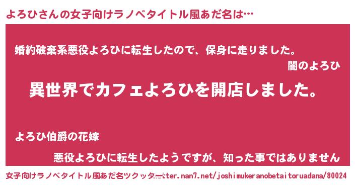| ヒーロー風カッコイイあだ名 | 『ネオヨロヒ』『仮面ヨロダー』 |
