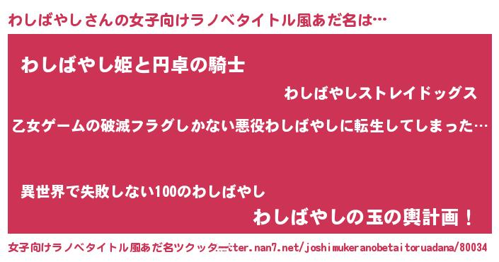 | 胡散臭い通販商品みたいなあだ名 | 『世界中を虜にした100年もののヴィンテージワイン…その名も「わしばやし」』 |