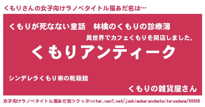 | 男性向けラノベタイトル風あだ名 | 『魔法科高校のくもり』『緋弾のクモリ』 |