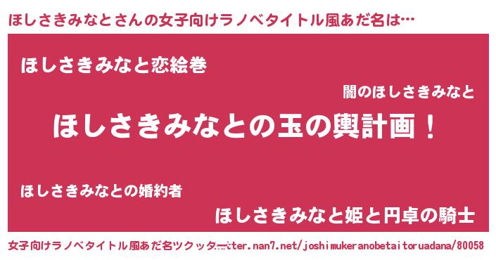 | 男性向けラノベタイトル風あだ名 | 『転生したらほしさきみなとだった件』 |