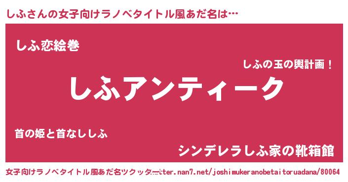 | ヒーロー風カッコイイあだ名 | 『ウルトラ戦士シフ』『愛の使者しふ』 |
