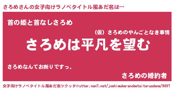 | 胡散臭い通販商品みたいなあだ名 | 『信頼と実績のペンダント…その名も「さろめ」』 |