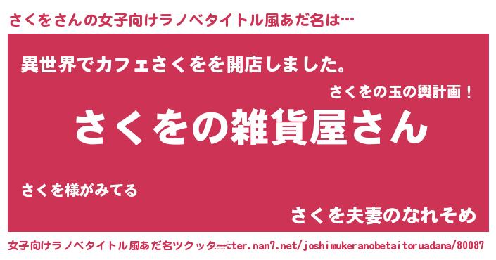 | 男性向けラノベタイトル風あだ名 | 『やはりさくをの青春ラブコメはまちがっている 』 |