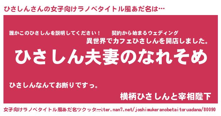 | 男性向けラノベタイトル風あだ名 | 『おまえをオタクにしてやるから、俺をひさしんにしてくれ! 』 |