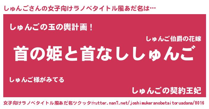 | 胡散臭い通販商品みたいなあだ名 | 『絶対に幸福をもたらす水素水…その名も「しゅんご」』 |