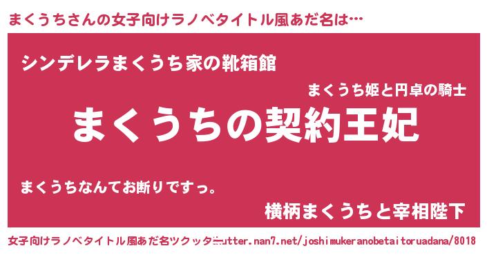 | 男性向けラノベタイトル風あだ名 | 『まくうちという概念が存在しない退屈な世界 』 |