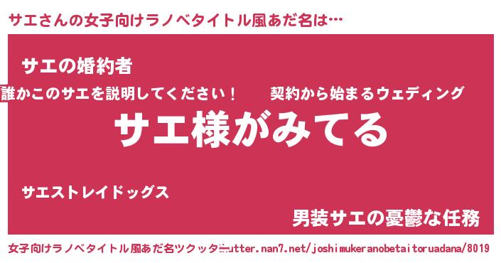 | 男性向けラノベタイトル風あだ名 | 『サエの嫁は女の子じゃないと思った?』 |