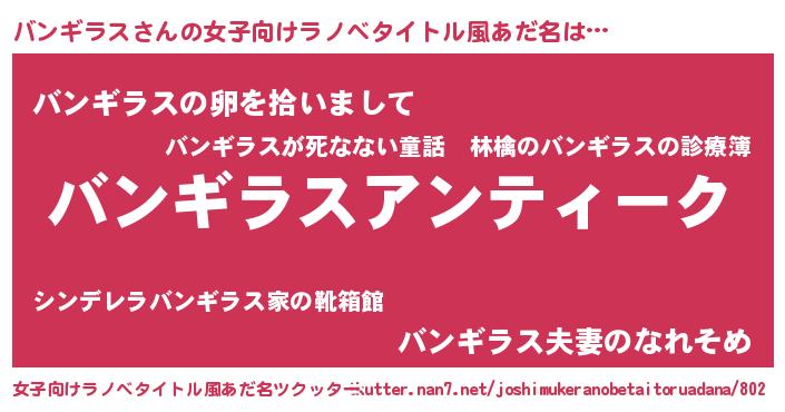 | 胡散臭い通販商品みたいなあだ名 | 『テレビで話題の冬虫夏草…その名も「バンギラス」』 |