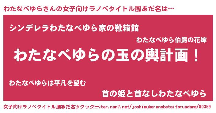 | 男性向けラノベタイトル風あだ名 | 『転生したらわたなべゆらだった件』 |