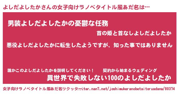 | 意味不明あだ名 | 『住所不定無職よしだよしたか(2歳)』 |