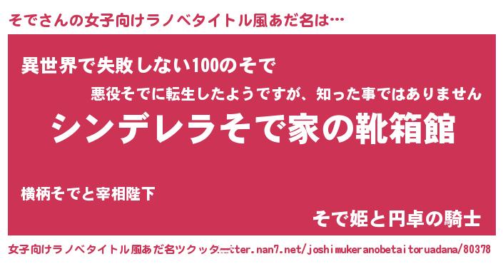 | 胡散臭い通販商品みたいなあだ名 | 『絶対に幸福をもたらす水素水…その名も「そで」』 |
