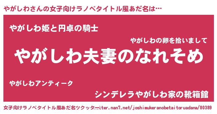 | 胡散臭い通販商品みたいなあだ名 | 『100人中100人が認めたマグネット磁石…その名も「やがしわ」』 |