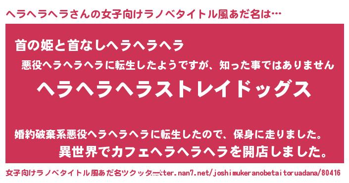 | 男性向けラノベタイトル風あだ名 | 『Re:ヘラヘラヘラから始める異世界生活』 |