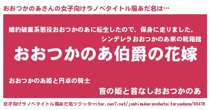 | 肩書あだ名 | 『おおつかのあ国家主席』 |