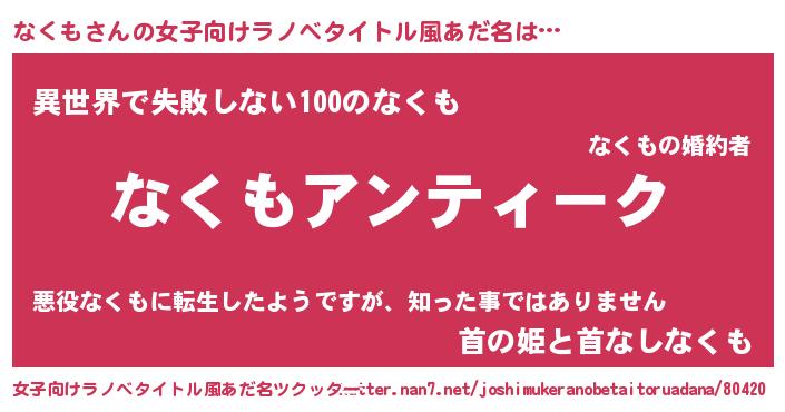 | 意味不明あだ名 | 『自称なくも』『永久保存なくも』 |