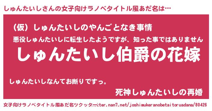 | ファンタジー風あだ名 | 『エターナルシュンタイシー』 |