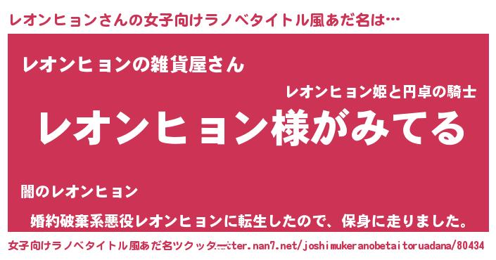 | 男性向けラノベタイトル風あだ名 | 『レオンヒョンの嫁は女の子じゃないと思った?』 |