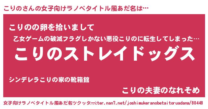 | 料理風あだ名 | 『ヘルシー!こりののピリ辛酒蒸し!』 |