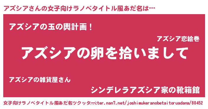 | 胡散臭い通販商品みたいなあだ名 | 『伝統あるサプリメント…その名も「アズシア」』 |